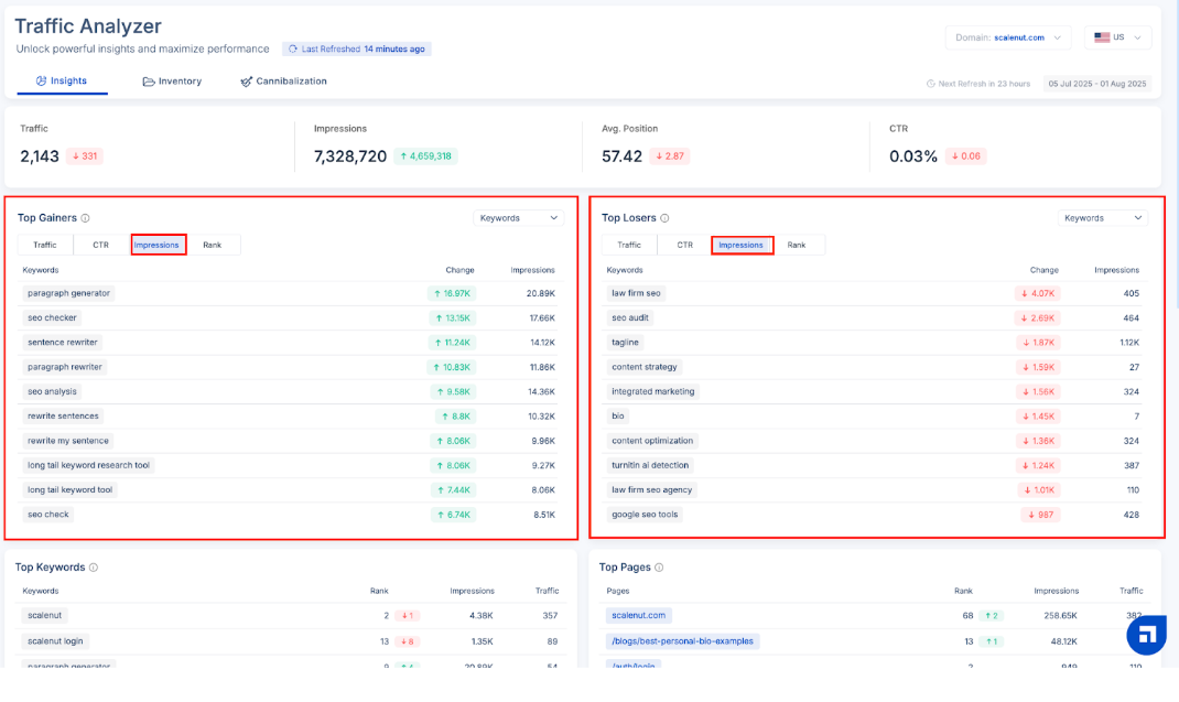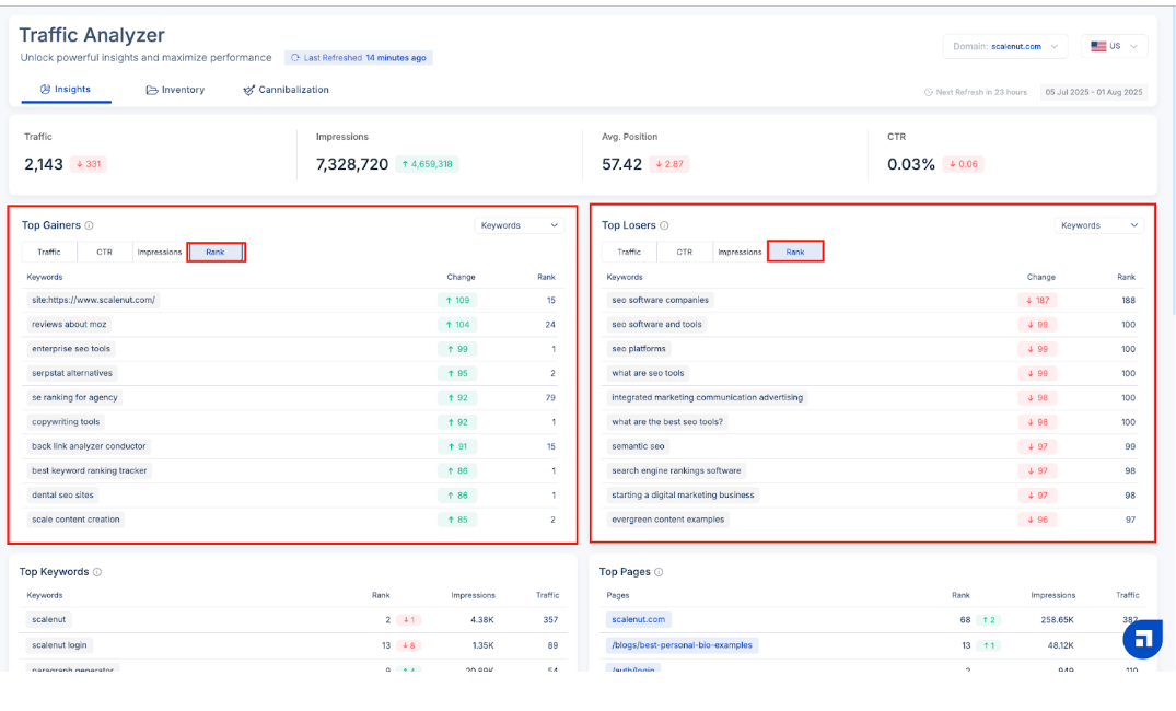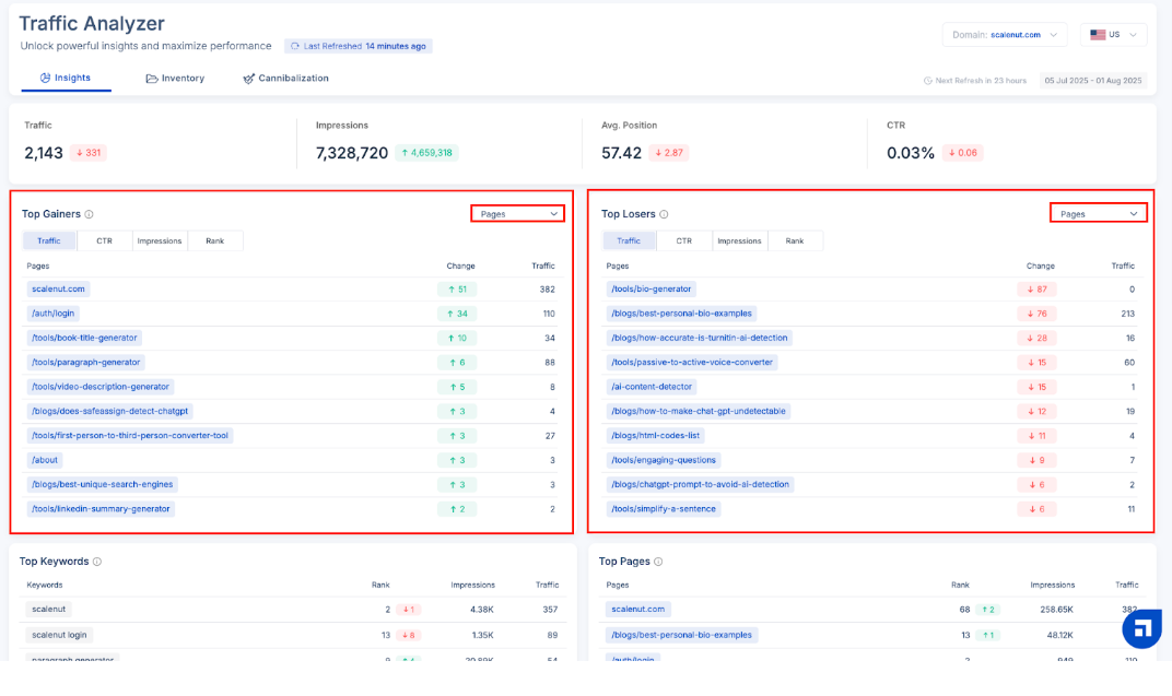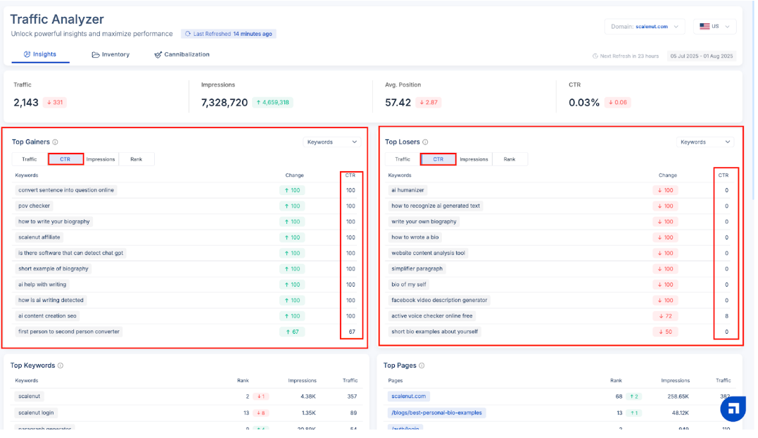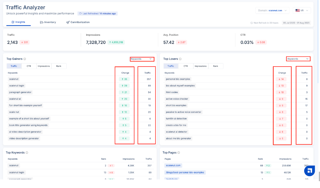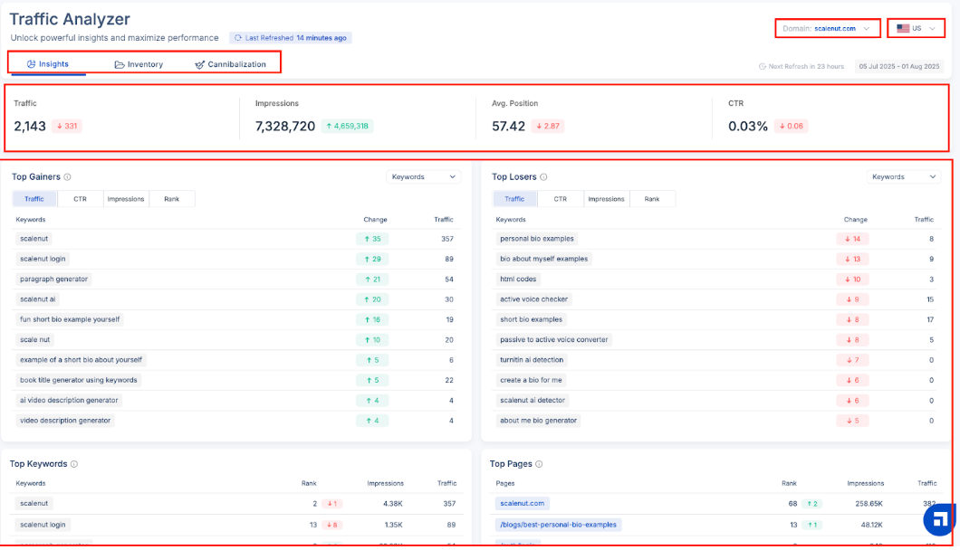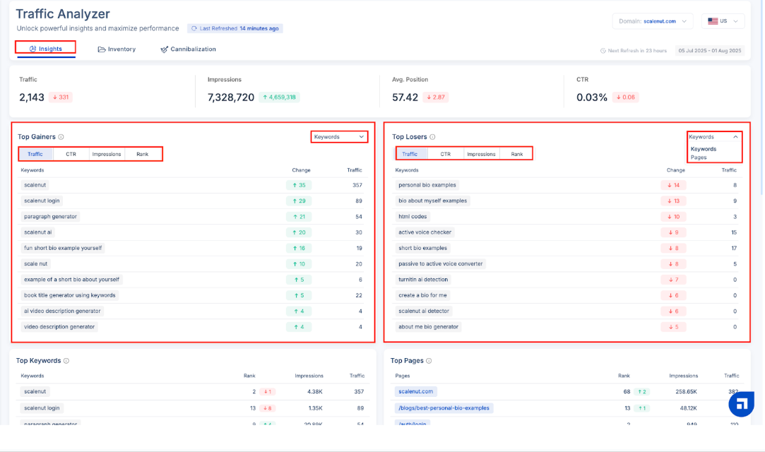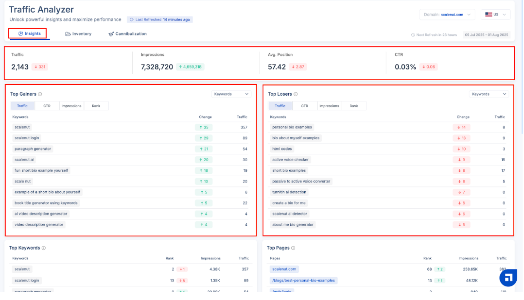 Scalenut’s Traffic Analyzer helps you detect and fix these overlaps—so your content stands out with precision and purpose.