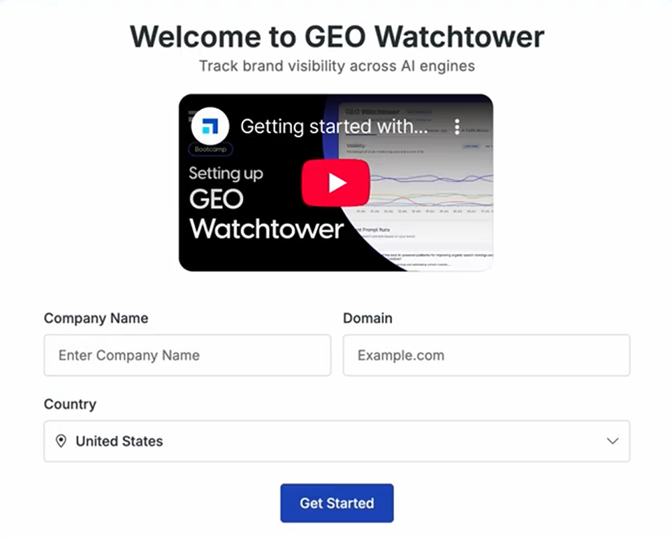 Once inside GEO Watchtower, you’ll need to fine-tune the settings that will guide how your brand is monitored across AI models. Follow these sections to complete your setup: