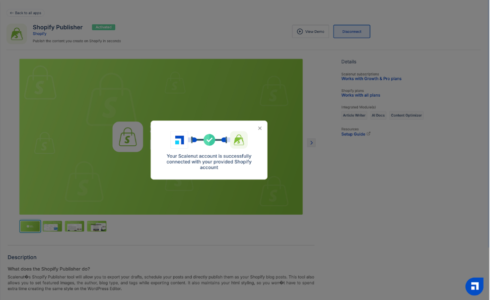 STEP 6: Congratulations! Your Shopify account is now successfully integrated with Scalenut.