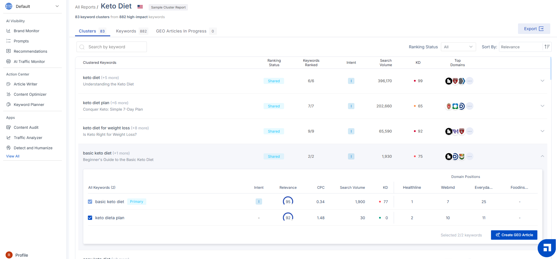 3. Speed Up with AI Insights - Get ready-to-use keyword clusters and competitive insights — skip the manual research and jump straight into content creation.