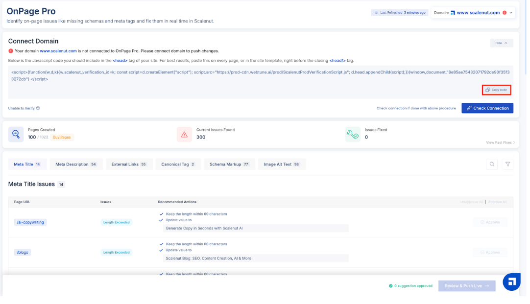 OnPage Pro is a powerful add-on in Scalenut’s GEO ecosystem—built to elevate your website’s discoverability across both search engines and AI-powered platforms.