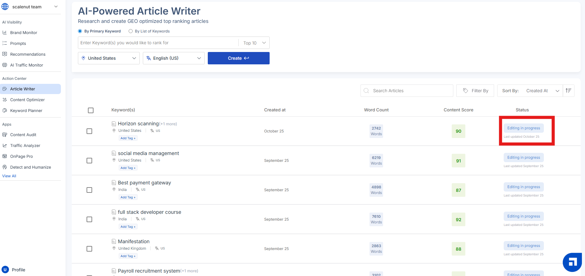 Publishing your meticulously prepared Scalenut reports on WordPress is a breeze with our one-click publishing feature. Follow these simple steps to seamlessly share your reports: