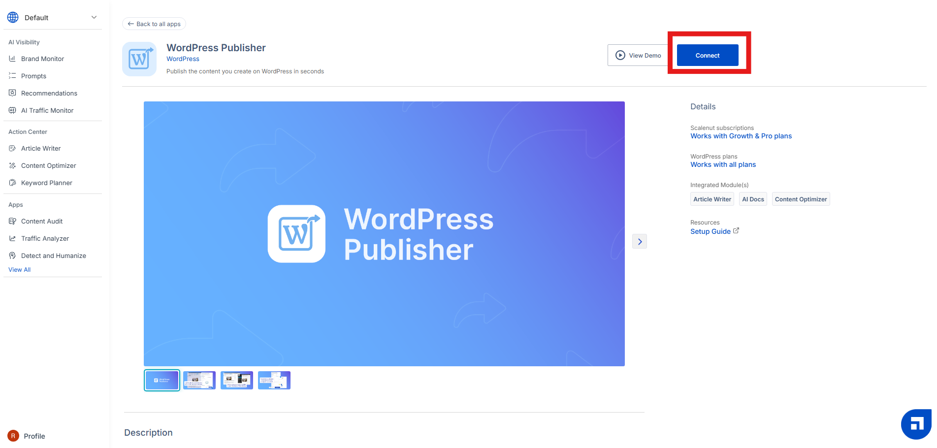 How to integrate your WordPress account on Scalenut via WordPress Publisher?